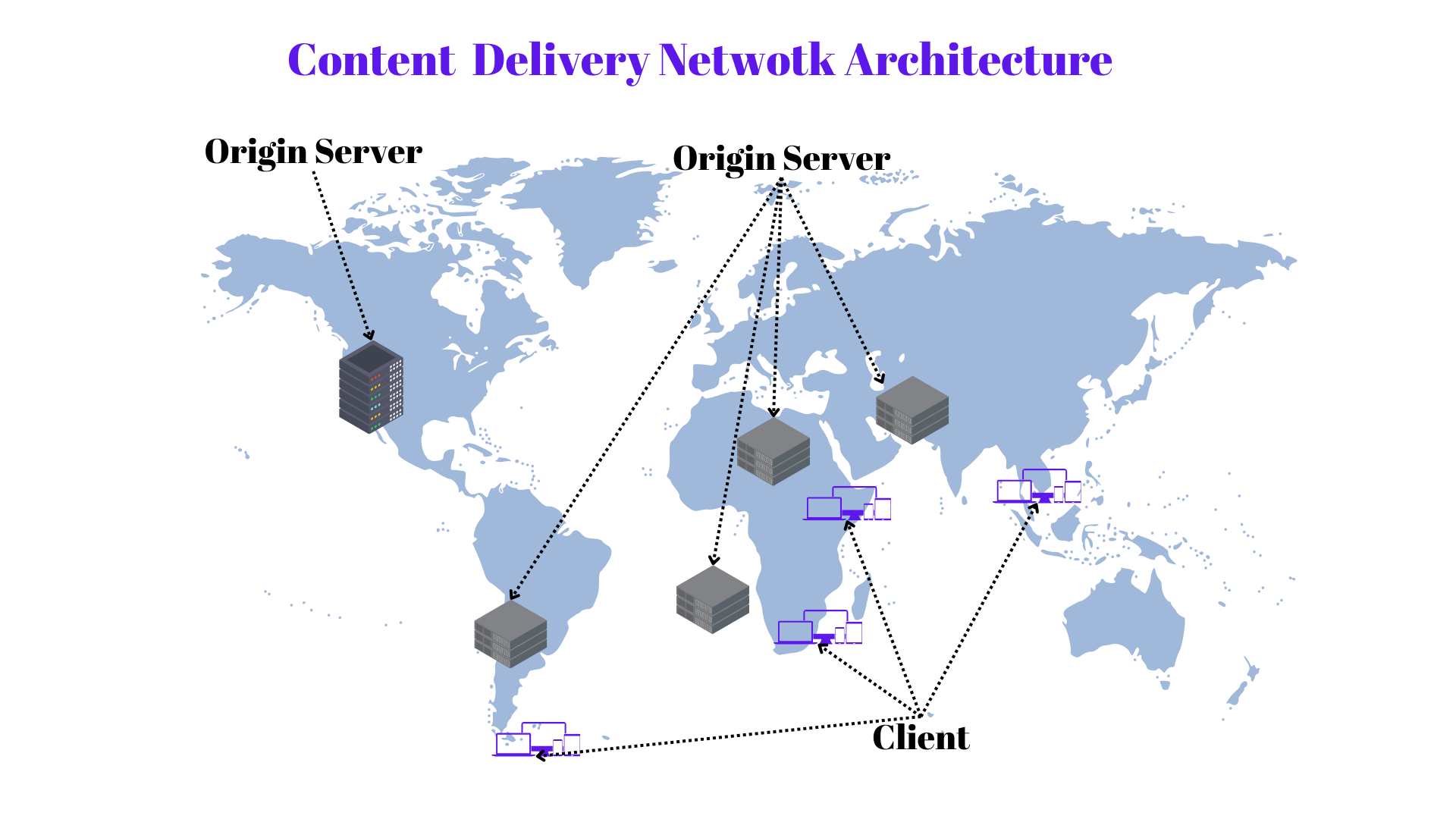 💾 Origin Servers – The main source of content, contacted only when needed.